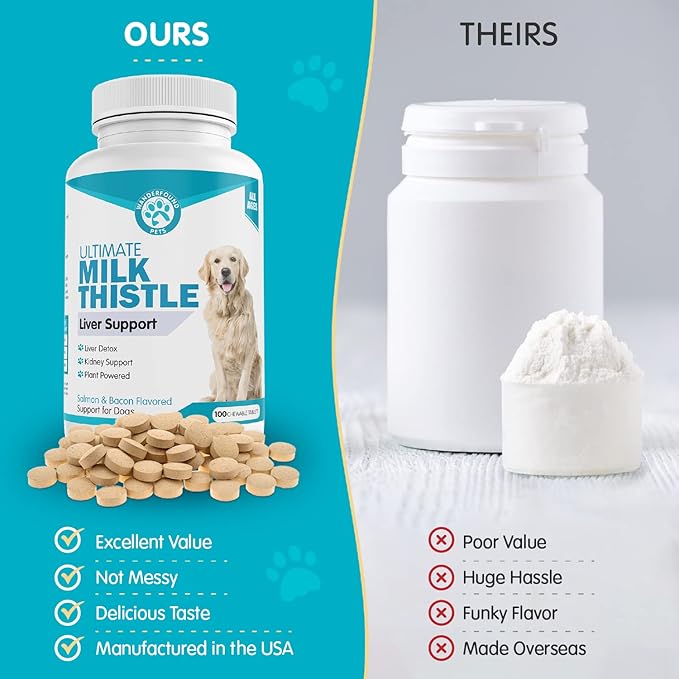 Wanderfound Pets Milk Thistle for Dogs – Tasty Salmon & Bacon Flavored Natural Liver Support for Pets – Kidney Cleanse Detox & Repair Formula Manufactured in The USA – 100 Chewable Tablets