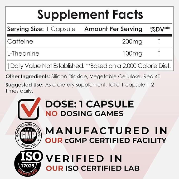 - NO CRASH NO JITTERS. CALM CLEAN ENERGY - Caffeine + L-theanine pills are a safe, convenient & economic alternative to sugary coffee and energy drinks to help you get through your work day.