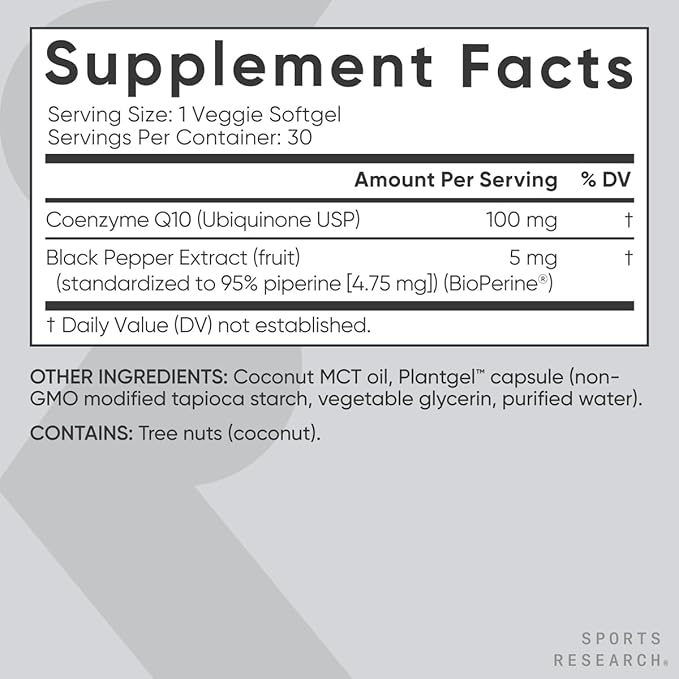 - ENHANCED ABSORPTION: Sports Research CoQ10 is not just a regular CoQ10 supplement. It's a unique blend, incorporating Bioperine (Black Pepper) and Coconut MCT Oil, designed to enhance the body's absorption of this fat-soluble compound.