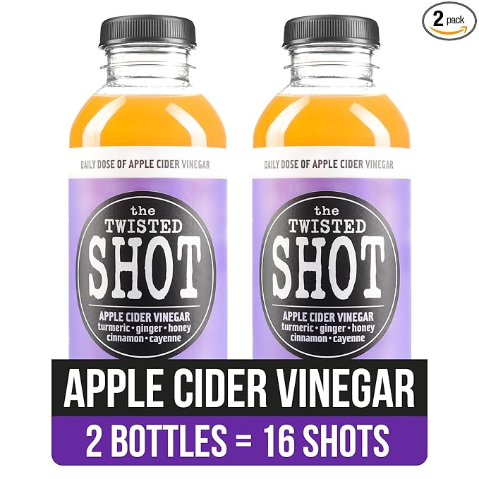 The Twisted Shot | Apple Cider Vinegar Wellness Shots with Honey, Cinnamon, Ginger and Turmeric | Digestion, Immunity and Gut Health Support | Ready to Drink Shots | 100% Organic | 2, 16 fl oz Bottles