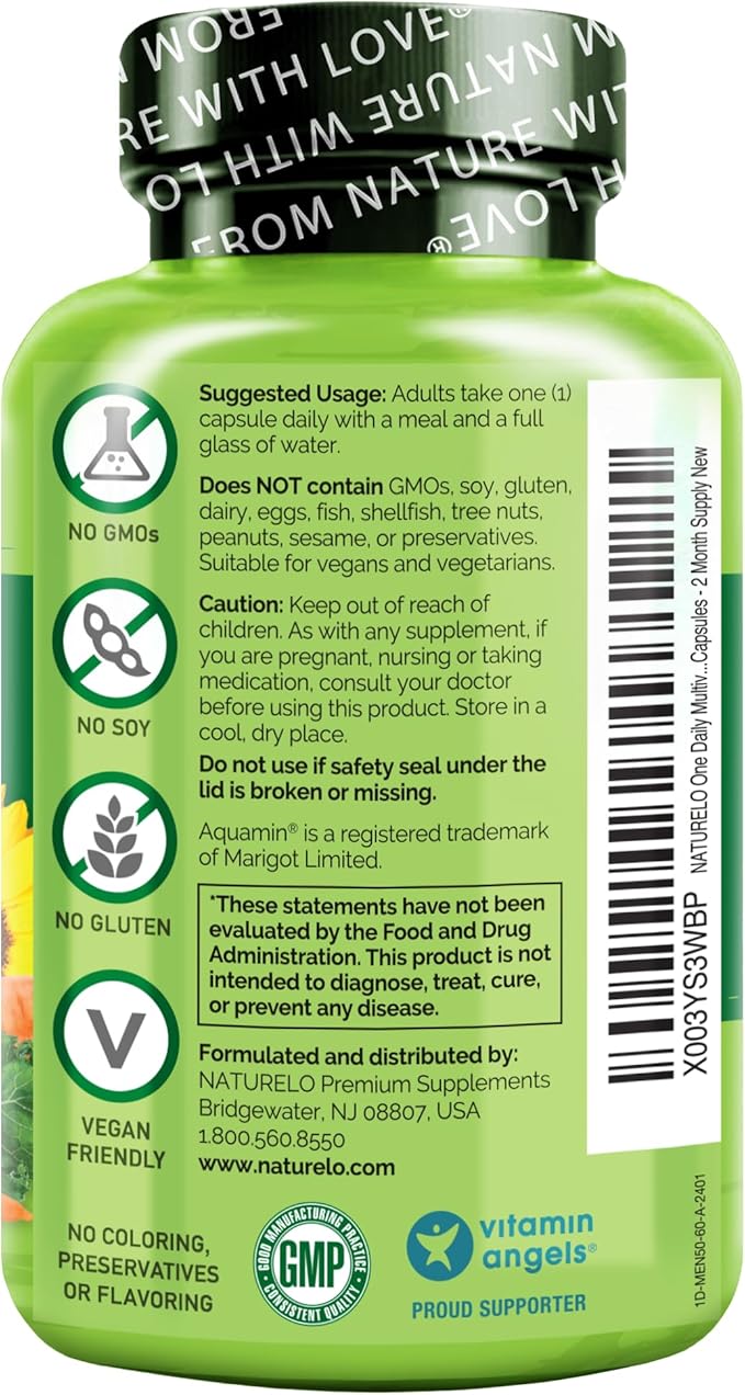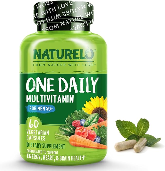 NATURELO Mens Multivitamins for Men 50+ - One Daily Multivitamin for Men with Vitamins, Minerals & Organic Whole Foods Non-GMO, 60 Vegetarian Capsules