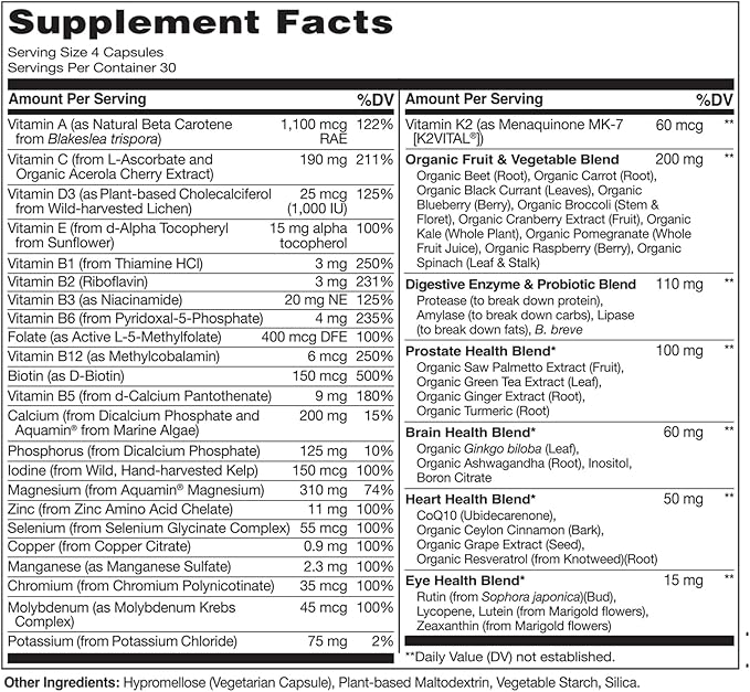 - Premium Plant-Based Ingredients: Our Whole Food Multivitamins are made with plant-based vitamins and minerals including Vitamin D3 from lichen, Vitamin E from Sunflower, and Calcium and Magnesium from marine algae.