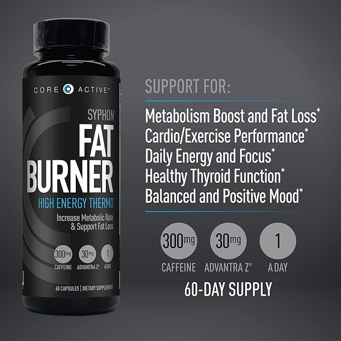 Core Active Syphon Thermogenic Fat Burner for Men, Keto Pills, Advantra Z for Energy, Focus, Appetite Control, Increase Metabolism Muscle Toning Supplements, Weight Loss Pills for Women - 60 Capsules