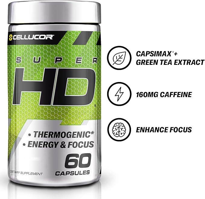 Cellucor Super HD for Men & Women - Enhance Focus and Increase Energy - Capsimax, Green Tea Extract, 160mg Caffeine & More 60 Servings