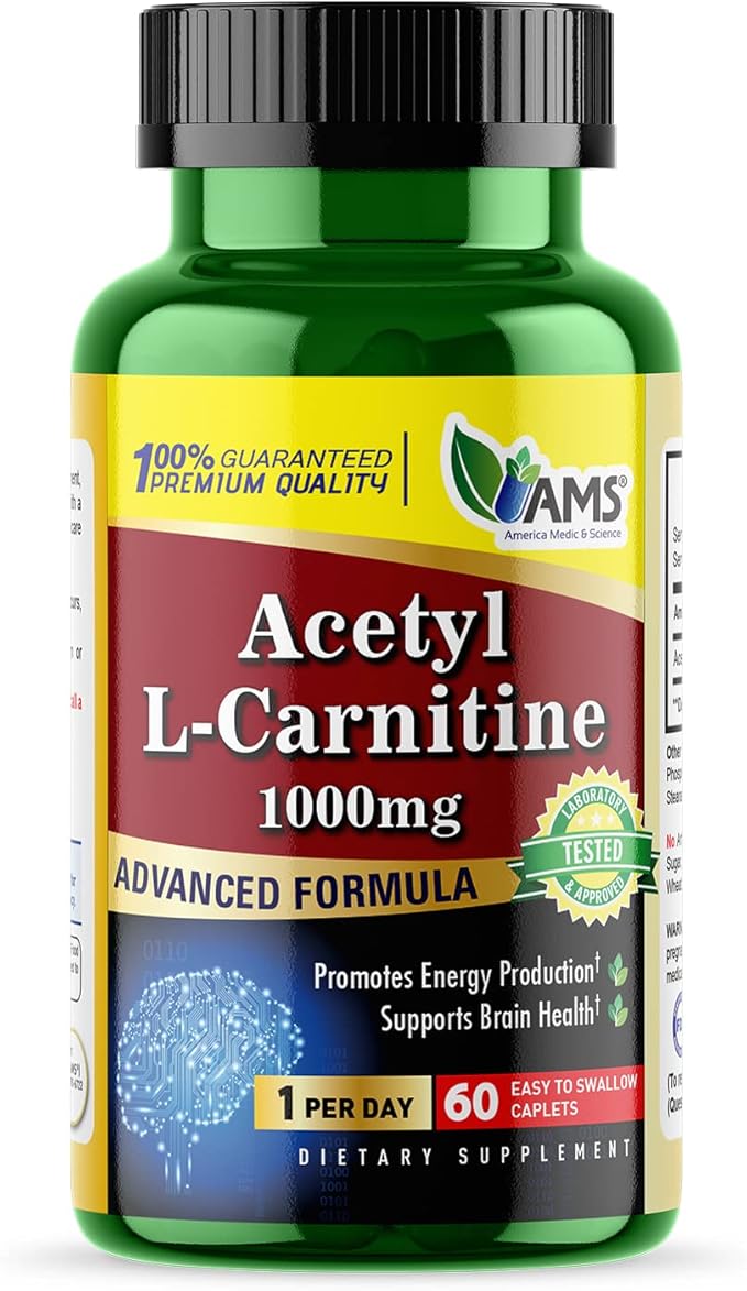 America Medic & Science Acetyl L-Carnitine 1000mg (60 Tablets) | Dietary Supplement for Men and Women | Promotes Energy Production | Supports Brain Health | Helps Improve Memory and Focus
