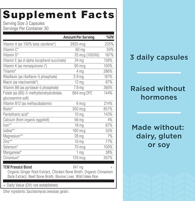 - TCM PRENATAL BLEND- Our Traditional Chinese Method blend is based off a Chinese tradition using herbs that have been around for more than 2,000 years.This blend features ginger which can help settle the tummy, bovine liver and wild hake roe, which are considered some of the most nutrient-dense foods on this planet, collagen-rich bone broth, and cinnamon.