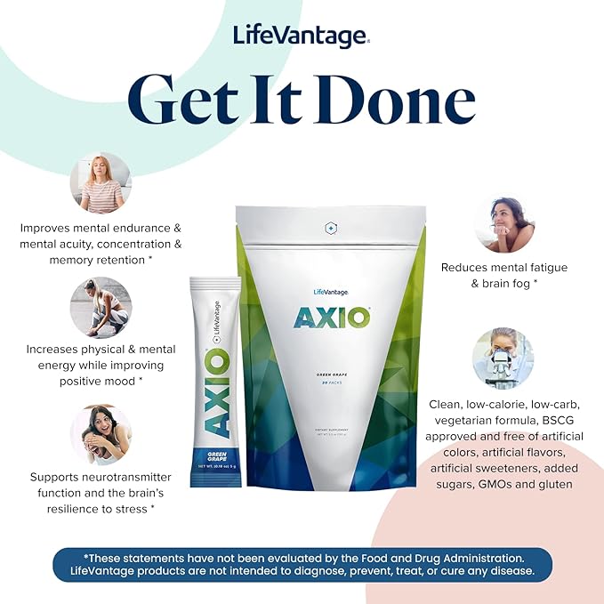 - Begin taking AXIO powder drink mix and support your overall cognitive health. This energy supplement improves mental endurance, concentration, and memory retention. For a healthier mind!
