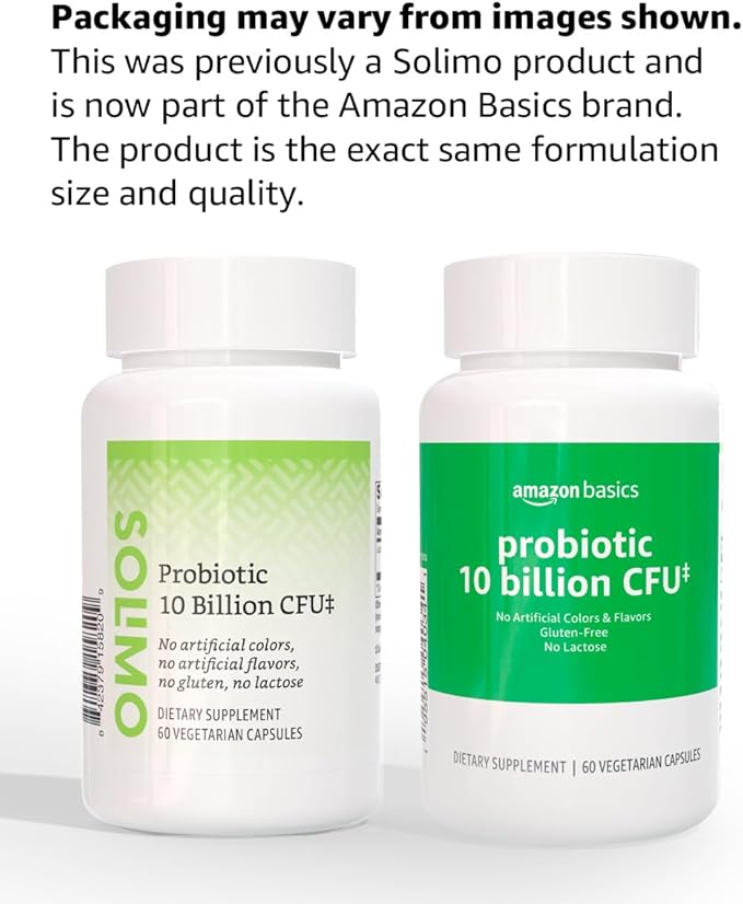 Amazon Basics Daily Probiotic, 10 Billion Active Cultures, Supporting Digestive and Intestinal Health, Capsule, 60 Count, Two Month Supply