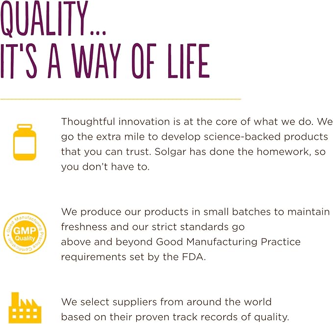 - The Gold Standard; For over 70 years Solgar has been committed to quality, health, and well-being. Our mission is to create the finest nutritional supplements in small batches, through tireless research, using only the finest raw materials