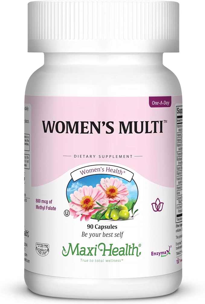 Maxi Health Women's Daily Multivitamin Biotin, Vitamins A B C D E, Calcium, Zinc, Lutein, Magnesium, Folate and More. Supports Gut Health for Women. Natural, Non-GMO, Gluten Free & Dairy Free Kosher