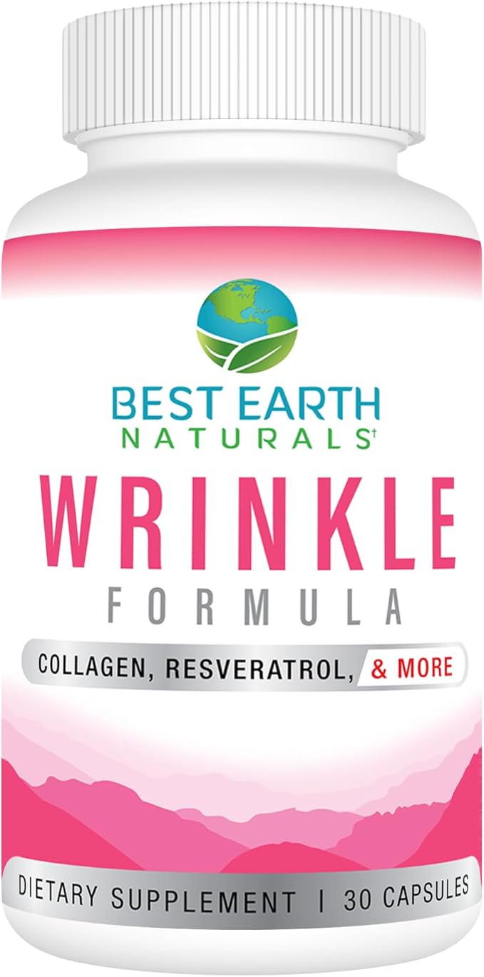 Best Earth Naturals Wrinkle Formula with Hyaluronic Acid, Niacinamide, Multi Vitamin, Collagen for Women or Men - Skin Vitamins Supplement -30 Day Supply (30 Capsules)
