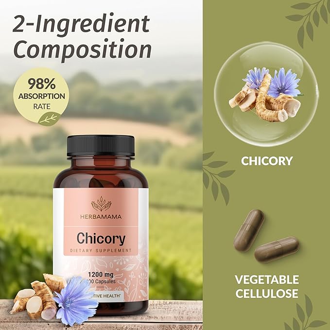 - Digestive Support: Herbamama’s Chicory daily fiber capsules are crafted to support digestive health. Chicory root is a rich source of inulin, a prebiotic fiber that promotes gut health, ensuring overall wellness.