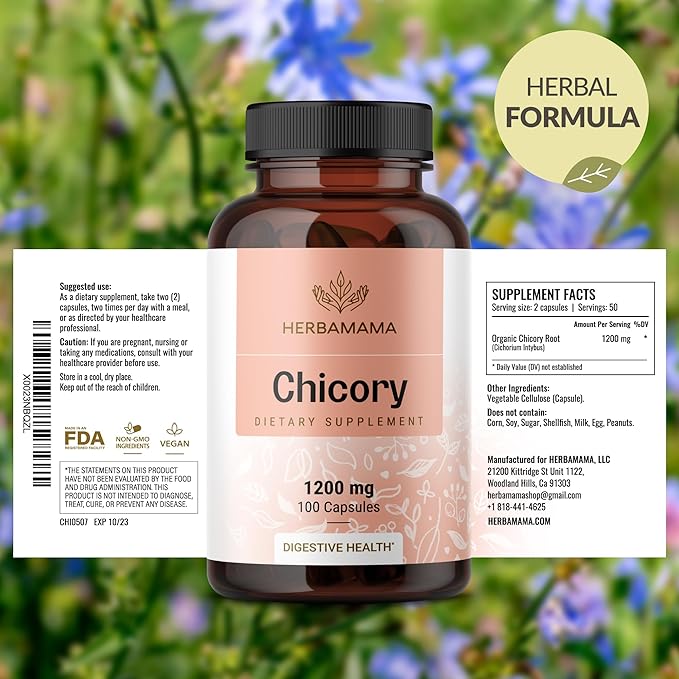 - For a Variety of Lifestyles: Our Chicory root fiber capsules are gluten-free, non-GMO, free from artificial colors, and any other fillers. Herbamama gut health supplement is crafted to complement any lifestyle.