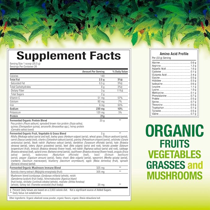 - 100% fermented, 100% organic protein: Formulated to promote an active and healthy lifestyle. Provides 21 grams of protein and a range of nutrients in a single, convenient serving*