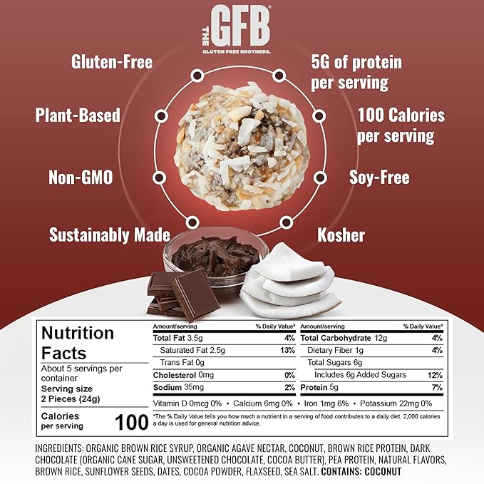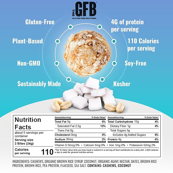 - SATISFYING, CERTIFIED SNACKING: The GFB protein bites are certified gluten free, non-GMO verified, vegan, and certified kosher. They are also seriously satisfying and come in a snack size pack that’s perfect for purses, pockets and gym bags.