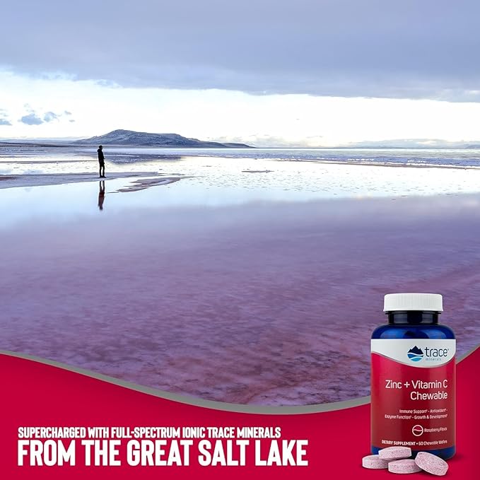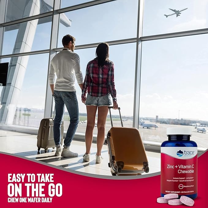 Trace Minerals Zinc Plus Vitamin C - Chewable Multivitamin for Enzyme Function & Healthy Growth Support - Vitamin & Mineral Supplement for Immune Health - Raspberry, 60 Chewable Wafers (60 Servings)