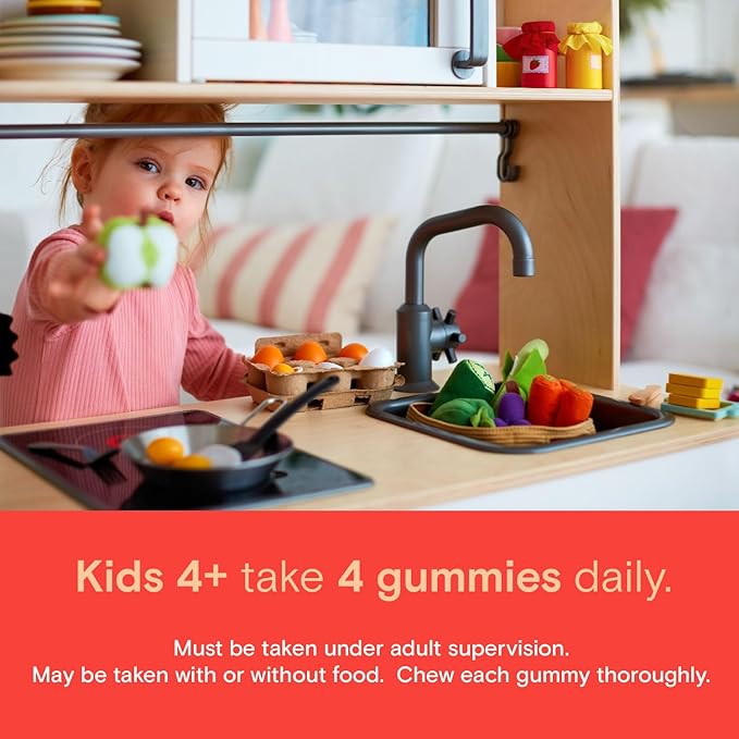 - Delicious Taste & Kid-Approved: Mixed Berry and Cherry Flavors with Other Natural Flavors. Kids 4 years of age or older, take 4 gummies daily. May be taken with or without food. Chew each gummy thoroughly