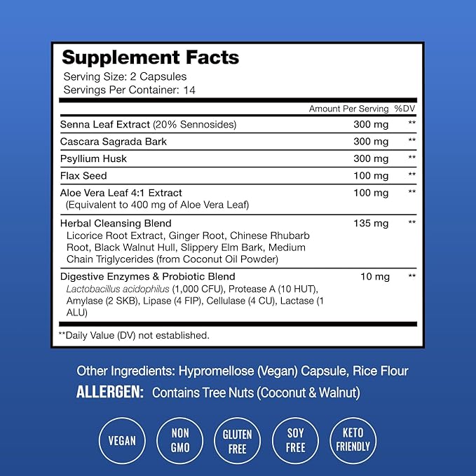 - Scientifically Formulated - Featuring clinically studied herbs Senna Leaf, Cascara Sagrada, Psyllium Husk, Flaxseed, a proprietary Herbal Cleansing Blend and more, this comprehensive formula offers everything your body needs for a wholesome one-stop-cleansing-shop. Lighten up with an effective and purifying detox that supports healthy bowel movements and overall digestive health & wellness.