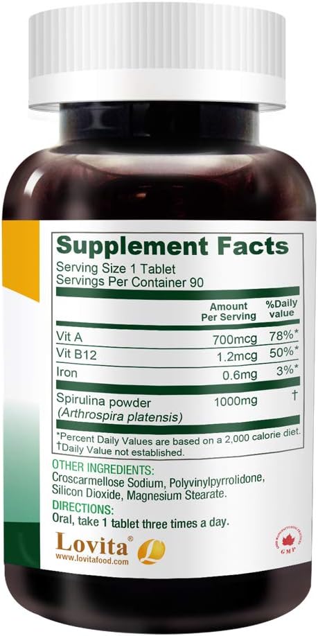 - ✅ [Premium Organic Spirulina]: Lovita spirulina 1000 mg tablets are made from selected organic spirulina, providing an easy way to get a daily dose of this nutrient-rich superfood.