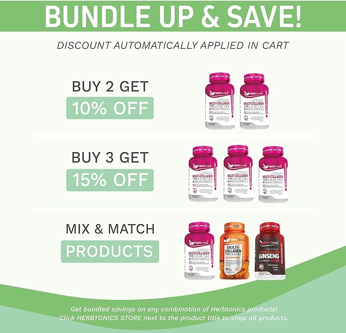 - Five Collagen Types ( I, II, III, V, & X): Unlock the power of five collagen types in this all-in-one formula designed to boost tissue health, support joint function, and improve skin elasticity.