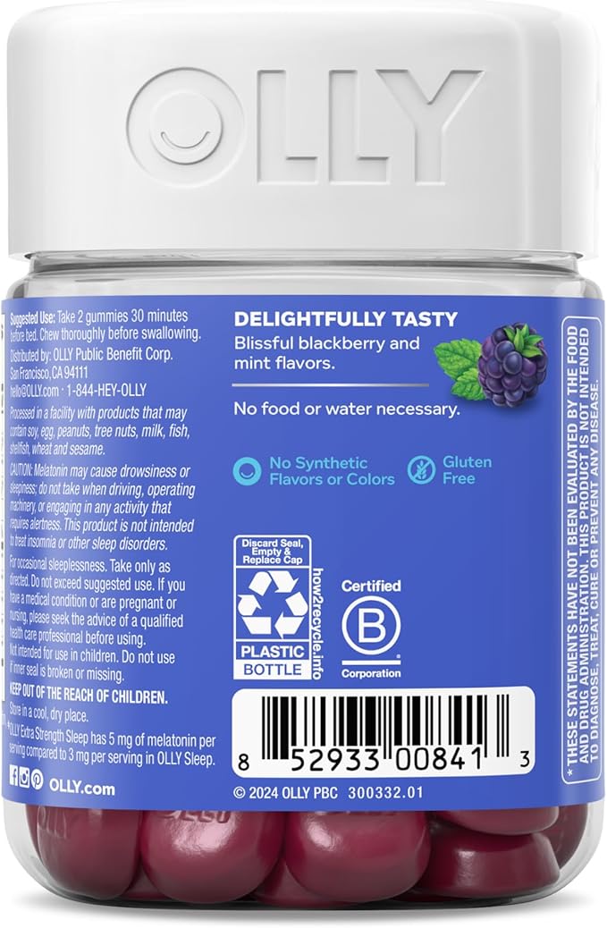 - OLLY EXTRA STRENGTH SLEEP GUMMIES: Melatonin gummies, with L-Theanine that works with your body to help you fall asleep and stay asleep*