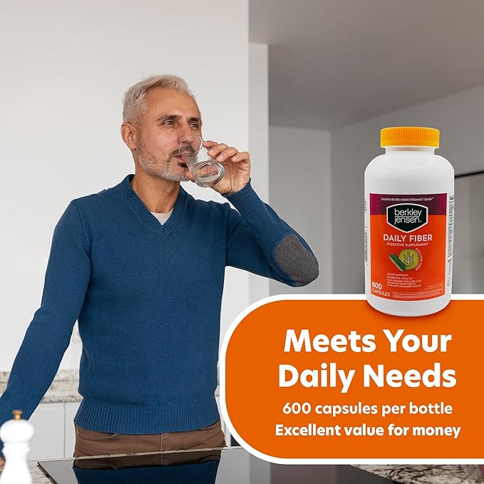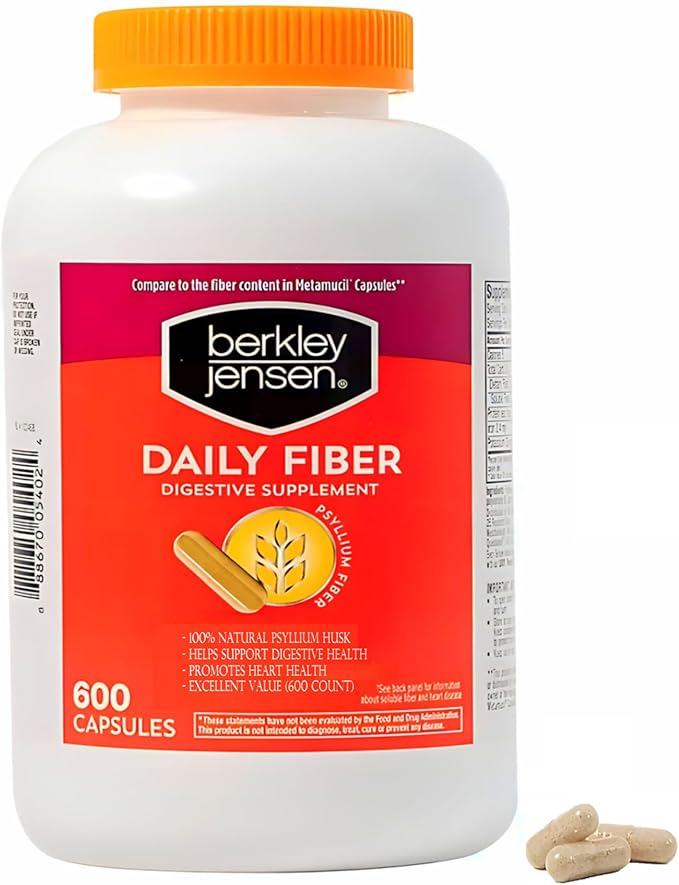 Berkley Jensen Daily Psyllium Husk Supplement (600 - Count), Natural Fiber for Men & Women - Fiber Capsules for Overall Digestive Health, Easing Constipation, Aiding Nutrient Absorption (Pack of 1)
