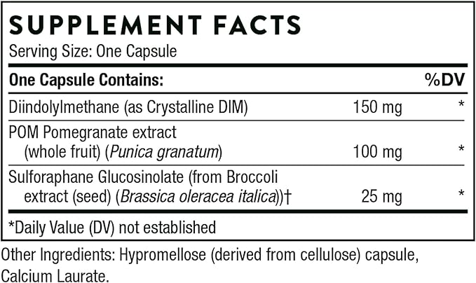 - Complementary Ingredients: The formula combines diindolylmethane (DIM), pomegranate extract, and sulforaphane glucosinolate (SGS). DIM promotes healthy estrogen ratios, pomegranate extract helps reduce excess estrogen production, and SGS supports liver detoxification, which is crucial to clearing already-metabolized estrogen*