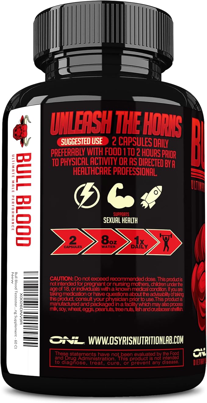 - Unleash the Bull in You with Bull Blood - Designed to enhance men's health, drive, and performance, our testosterone pills are the ultimate libido booster for men. Experience an extreme performance boost with this male enhancing supplement.