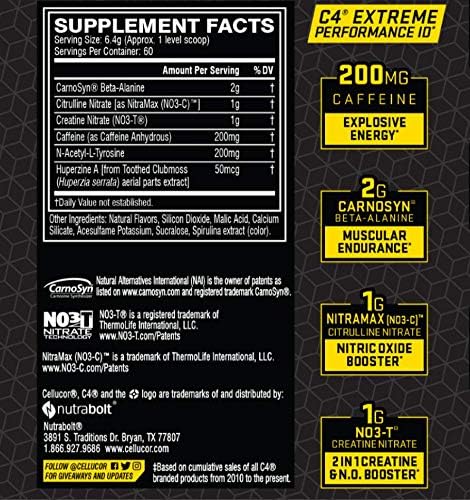- C4 PRE WORKOUT POWDER FOR MEN & WOMEN - America's #1 Selling Pre-Workout Brand has been trusted since 2011 with over 2 billion servings sold*