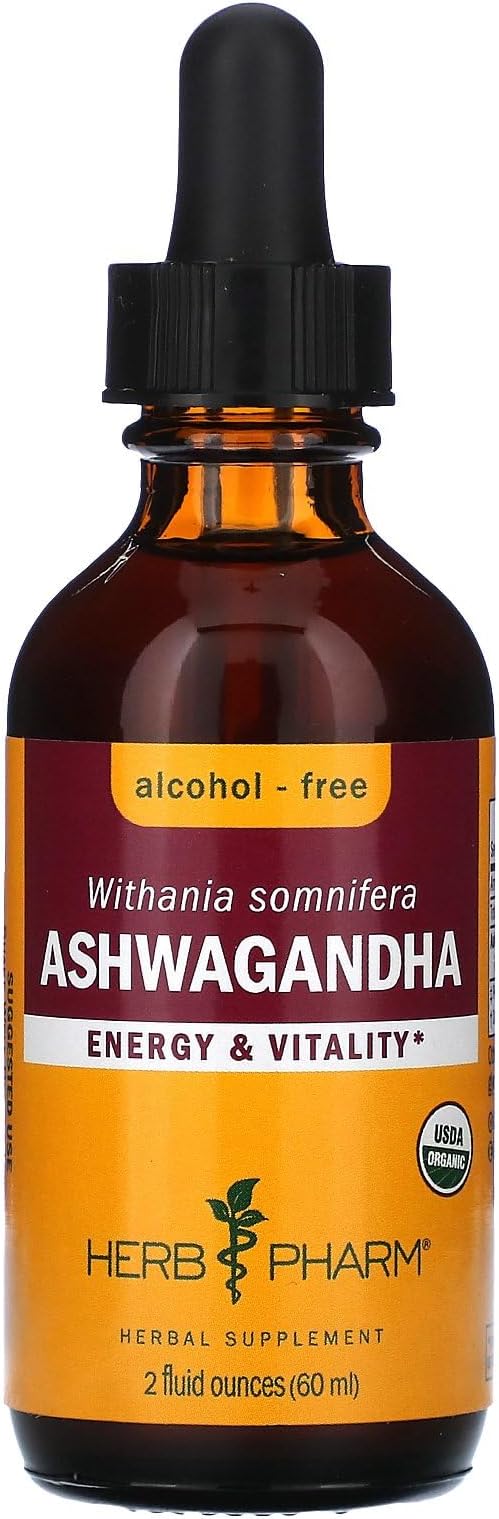 Herb Pharm Certified Organic Ashwagandha Extract Drops for Traditional Support for Energy and Vitality, Alcohol-Free Glycerite, 2 Oz