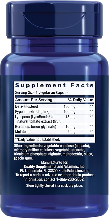 Life Extension Mens Bladder Control - Prostate & Bladder Health Supplement - For Support Urination & Sleep Patterns with Melatonin, Beta Sitosterol - Non-GMO, Gluten-Free, Vegetarian - 30 Capsules