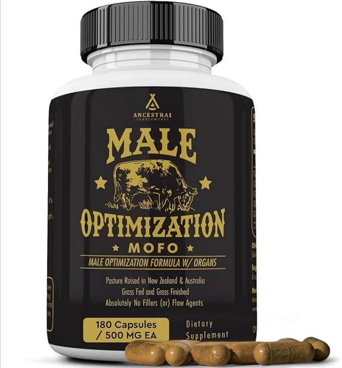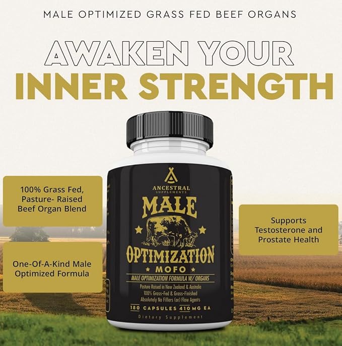 Ancestral Supplements Mofo, Supplements for Men, Support for Test and Energy Levels and Overall Men's Health and Wellness, Non-GMO Grass Fed Beef Organ Supplement with Liver, No Fillers, 180 Capsules
