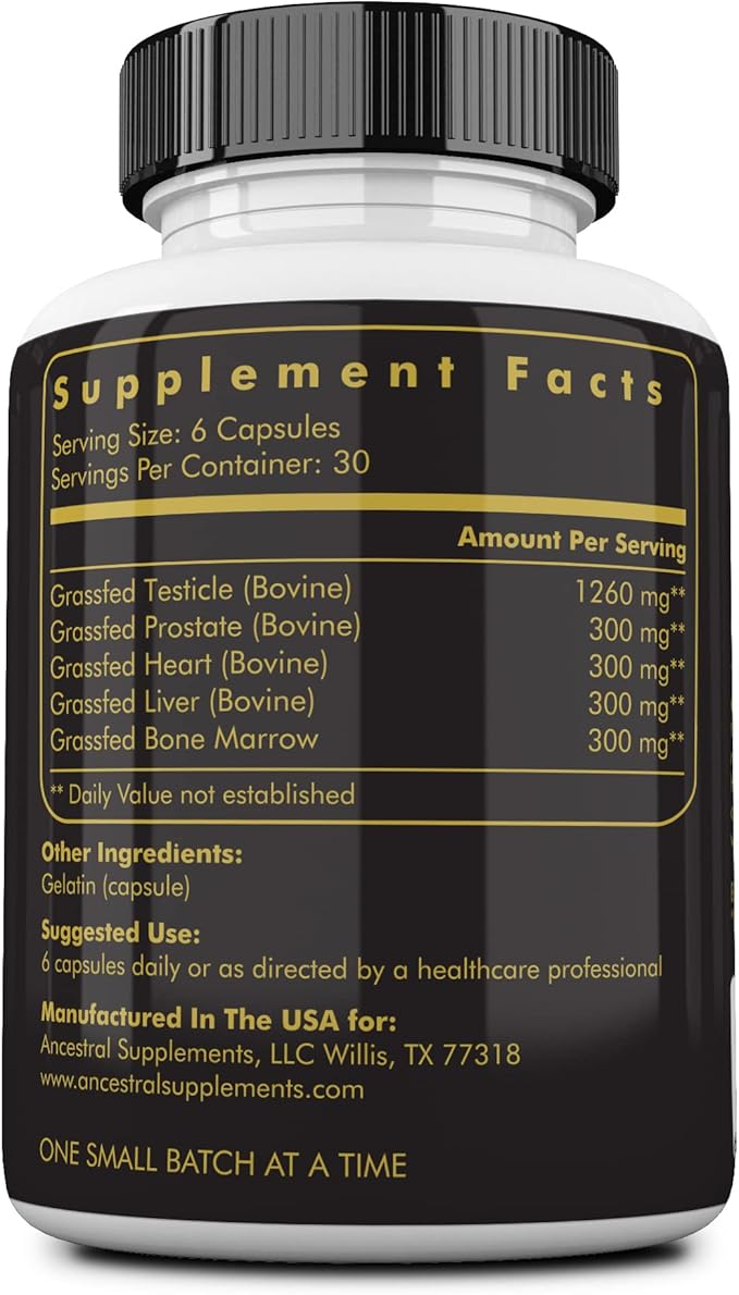 - Special Ingredients : Grass Fed Bovine Testicle, Grass Fed Bovine Prostate, Grass Fed Bovine Heart, Grass Fed Bovine Liver, Grass Fed Bovine Bone Marrow Grass Fed Bovine Testicle, Grass Fed Bovine Prostate, Grass Fed Bovine Heart, Grass Fed Bovine Liver, Grass Fed Bovine Bone Marrow