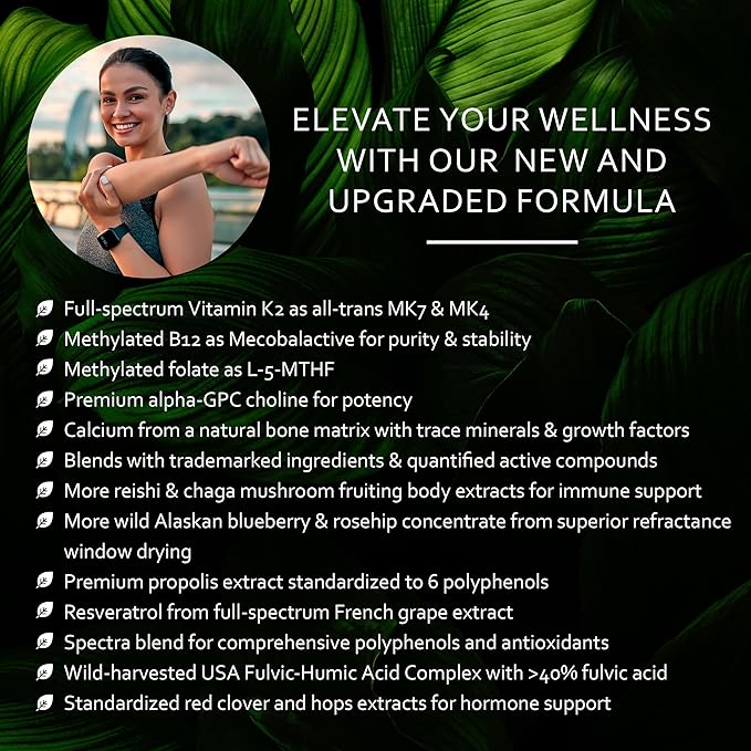 - Whole Food Multivitamin for Women: Our new & upgraded formula offers rapid bioavailability and contains Vit A, C, D3, E, K2, B6, B12, Thiamin, Riboflavin, Niacin, Folate, Biotin, Mg, K, Ca, Zn, & Fe.