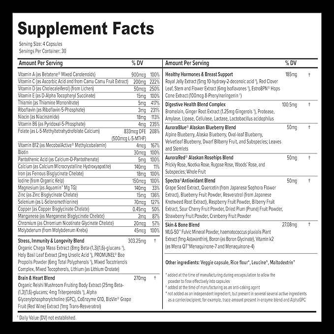 - Adult Vitamins with Advanced Holistic Support: Each women’s multivitamin bottle is made to provide optimal support for the heart, brain, energy, mood, skin, and immune system.