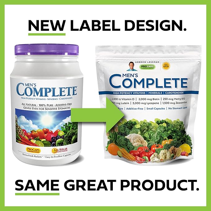 ANDREW LESSMAN Multivitamin - Men's Complete 30 Packets – High Potencies of 30+ Nutrients, Essential Vitamins, Minerals & Carotenoids. Small Easy-to-Swallow. No Binders, No Fillers, No Additives
