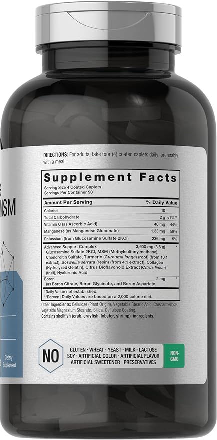 Horbäach Glucosamine Chondroitin MSM | 3600 mg | 360 Caplets | Advanced Formula with Turmeric | Non-GMO, Gluten Free