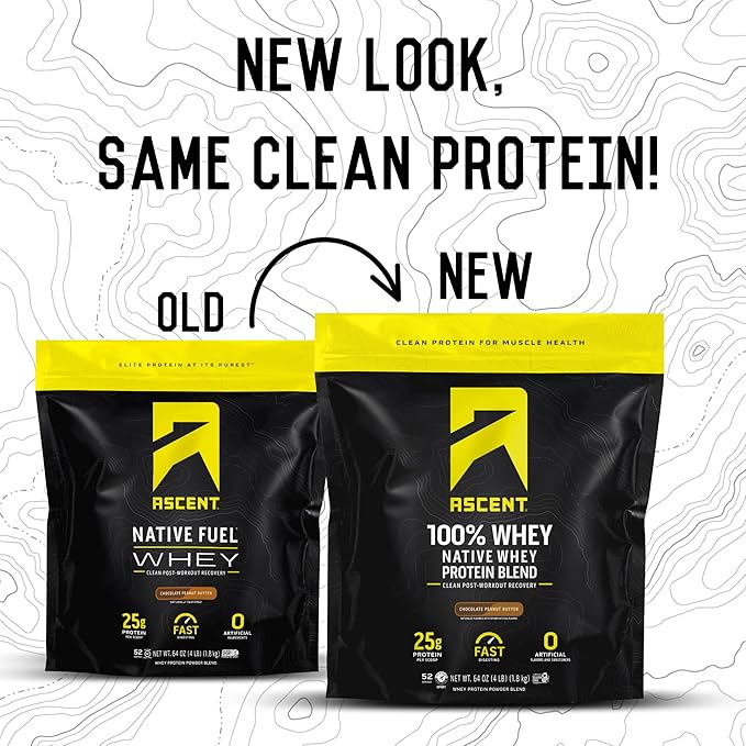 Ascent 100% Whey Protein Powder - Post Workout Whey Protein Isolate, Zero Artificial Flavors & Sweeteners, Gluten Free, 5.5g BCAA, 2.6g Leucine, Essential Amino Acids, Chocolate Peanut Butter 4 lb