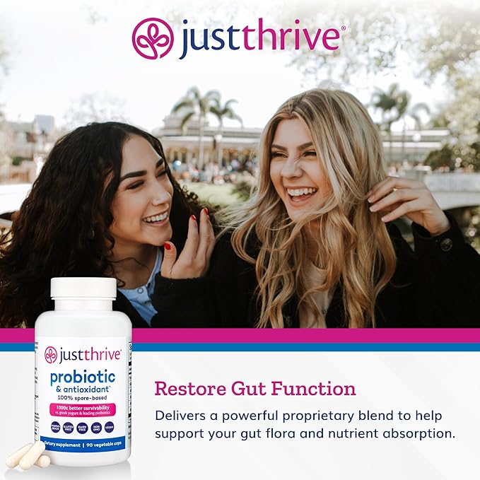 Just Thrive Probiotic & Antioxidant Supplement - 100% Spore-Based Digestive and Immune Support - Gluten Free, 90 Caps
