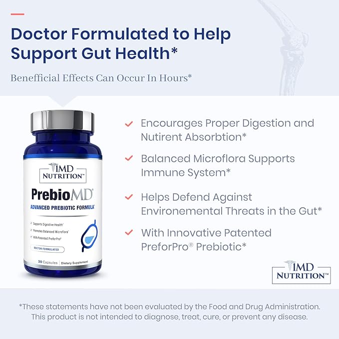 - Food for Probiotics: The essential bacteria in your gut need food too. Prebiotics help them flourish, and there is no better way to support yours than the doctor-formulated, restorative prebiotics in PrebioMD.*