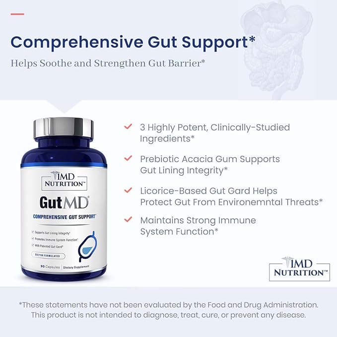 - Restore Gut Strength: With 4 clinically studied ingredients to improve the integrity of your intestinal lining, GutMD helps protect your gut from environmental threats while allowing the nutrients you need to pass through.*