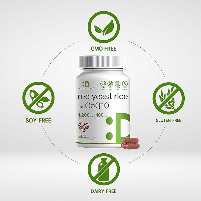 Deal Supplement Red Yeast Rice 1,200mg Per Serving with CoQ10, 300 Capsules - Antioxidant Support - Pure Monascus Purpureus Powder Source - Citrinin Free, Non-GMO