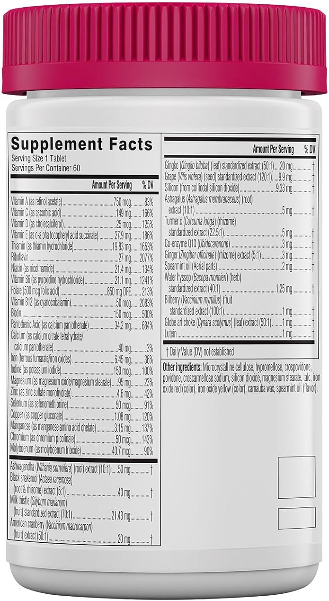 - MULTIVITAMIN FOR WOMEN and MEN 50 PLUS: Our daily womens multivitamin is specifically formulated for women and men aged 50 and up and contains vitamins, minerals, antioxidants, and adaptogen herbs.