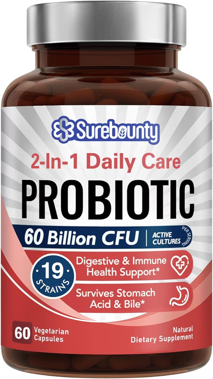- Survives Stomach Acid & Bile*: With advanced delayed-release technology, the beneficial bacteria in our formula can withstand stomach acid and bile, reaching deep into the intestinal tract alive for better absorption.* Besides, our 2-IN-1 Daily Care Probiotic is shelf-stable without refrigeration. Take two capsules a day, and feel Soothed, Relieved & Powered with Surebounty 2-IN-1 Daily Care Probiotic.
