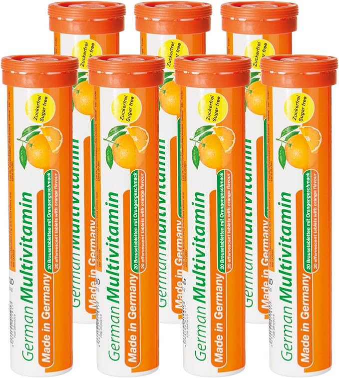 T&D German Multivitamin Drink Effervescnet Tablets 140 Servings Orange Flavour - Vitamin C, E, B1, B2, B6, B12, Biotin, Folic Acid, Niacin, Pantothenic Acid Pharma – Made in Germany