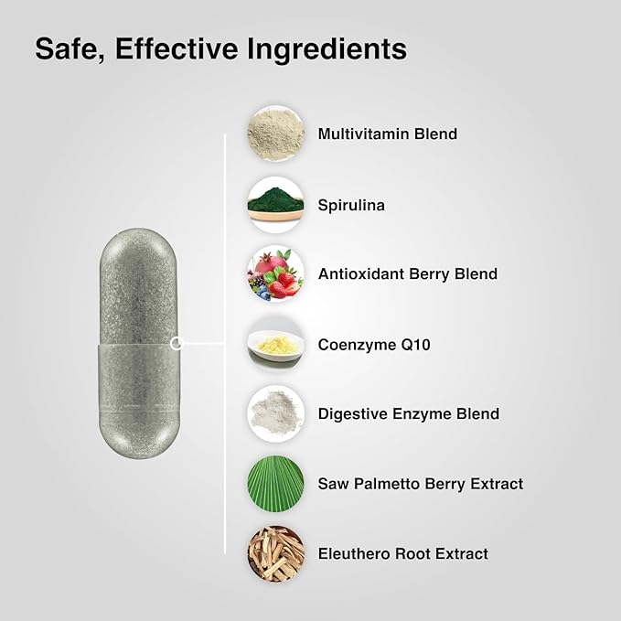 - Wellness Support: Plant extracts including Saw Palmetto, Alpha Lipoic Acid and Eleuthero + CoQ10 for cellular energy.
