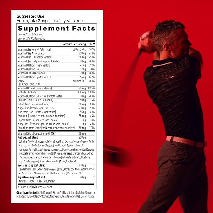 - Essential Minerals and Vitamins for Men: A to K2 essential blend for your body. Including minerals Zinc, Selenium, Manganese & Vitamin D for Immune Health.