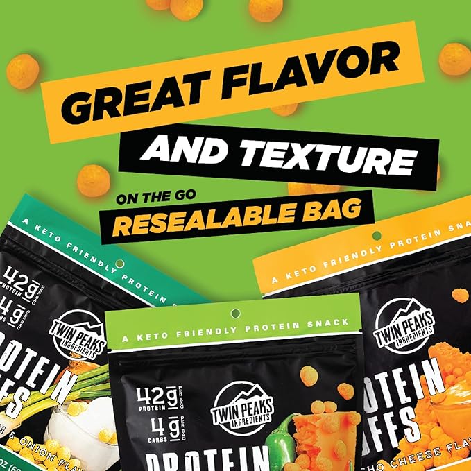 - SNACK SMART: A guilt free, healthy alternative to traditional chips, and crackers for healthy variety in your snack foods. Each Twin Peaks Protein Puff bag is promptly sealed with a tamper proof/stay-fresh seal to ensure product safety and maximum flavor. We care about your body and what you put in it!