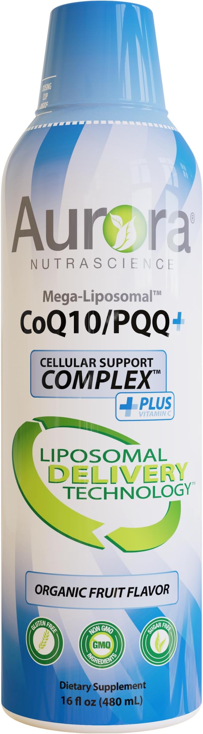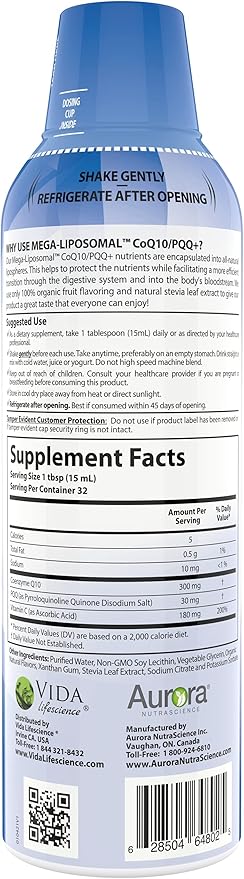Aurora Nutrascience, Mega-Liposomal CoQ10/PQQ+ Vitamin C, Gluten Free, Non-GMO, Sugar Free, Organic Fruit Flavor, 16 fl oz (480 mL)