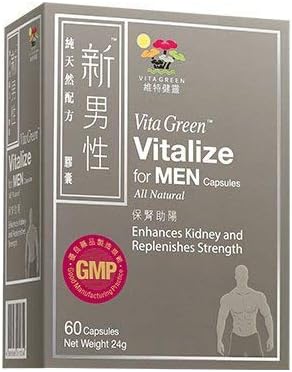 Vitalize for Men Daily Supplement 60 Capsules, Chinese Herbs for Kidney, Boost Extra Strength Stamina Muscle Growth Reproduction Energy Focus – 60 Count